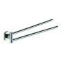 Art. EP23 A due bracci girevoli salvaspazio, dallo stile elegante in acciaio inox e Cromall arricchisce il tuo bagno con personalit. La serie pu essere incollata alle piastrelle, oppure fissata nel modo tradizionale con viti e tasselli (non compresi). Dimensioni 36 x 4,6 x h 5,4 cm. Portata max 10 Kg.