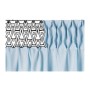 Mod. B524 nastro arricciatende in PET. A 3 tasche e 4 cordini. Altezza 100 mm. Rapporto di arricciatura 1:2. Colore bianco.