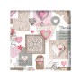 PVC stampato accoppiato a tessuto di polipropilene. Altezza 140 cm. Fantasia Country Life Love rosa. Rotolo da 20 m.