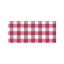 PVC stampato accoppiato a tessuto di polipropilene. Altezza 140 cm. Quadri rossi 1,5 x 1,5 cm. Rotolo da 20 m.
