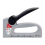 Mod. DUO TAK 110 fissatrice manuale con corpo in nylon 30 fibra di vetro. Leva in acciaio con copertura in plastica antiscivolo. Carica inferiore anti inceppamento. Compatta, maneggevole, robusta. Molto potente. Massima capacit di infissione con il minimo sforzo. Assemblaggio telai e cornici in legno. Lavori di decorazione, fissaggio tappezzeria, ricopertura di divani e mobili. Fissaggio di tutti i tipi di carta e stoffa. Per punti con passo 11,2 mm e altezza 510 mm. Monta punti 105 - 108 - 110. Peso 0,248 kg.