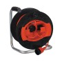 Art. 10.196 prolunga con raccoglicavo mod. Golia Garden rullo diametro 260 mm realizzato in materiale termoplastico, cavalletto metallico. Sezione filo 2x1,5 mm2 H05VV-F. Max potenza prelevabile 1.600W a cavo avvolto e 3.400W a cavo svolto. Lunghezza cavo 25 m. Spina schuko 2P 10A al centro tamburo, presa schuko 2P 10A mobile al terminale.