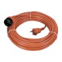 Art. 92.834 da giardino. Lunghezza cavo 25 m. Sezione filo 2x1,5 mm2 H05VV-F. Spina schuko 2P - 16A. Presa schuko/bipasso 2P - 16A. Colore arancione.
