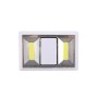 corpo in ABS, COB LED, 3W - 150 lumen - 5.000K - IP20. 3 batterie AAA incluse. Autonomia 10 ore in uso continuo. Portata 5 m. Si accende e spegne premendo l'interruttore centrale. Totalmente senza fili