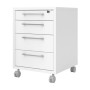 Art. 80419-49AK Cassettiera in kit linea Prima a quattro cassetti e 4 ruote con struttura in truciolare rivestito in melaminico. Il 1 cassetto e' munito di serratura. Dimensioni 48 x 49 x h 68 cm. Colore bianco.