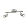 per soffitto, parete in metallo finitura nichel. Consente di dirigere la luce dove si desidera, semplicemente regolando, ruotando o inclinando la parte superiore dello spot. Attacco GU10. Tensione 220/240V - 50/60 Hz - IP20. Forniti senza lampada (max 50W). Posti 2. Dimensioni 80x324xh130 mm. Peso 0,280 kg.