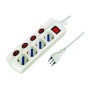 Fig. 5 spina 16A 2P+T con 4 prese schuko/bipasso 10/16A 2P+T 230V - IP20 dotata di children safety che impedisce di introdurre corpi estranei nella presa in tensione. Con interruttore generale + 4 interruttori indipendenti. Sezione cavo 3x1 mm. Lunghezza cavo 1,5 m. Colore bianco.