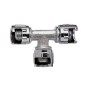 Art. 12/B raccordo di giunzione a T con 3 dadi in zama fresati. Corpo in ottone nichelato. Attacco . Lunghezza 50,6 mm. Peso 90 g. Su placchetta self service.