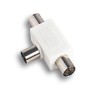 Art. 32.060 induttivo schermato 9,5 mm per cavo coassiale 75 Ohm. Adattatore doppio da spina connettore centrale maschio a 2 prese induttive passo 9,5 mm. Custodia in materiale antiurto. Colore bianco.