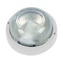 in polipropilene con copertura in vetro. A norme EN 60598-1 e EN 60598-2-1. Portalampada E27 (attacco grande) per lampade ad incandescenza (max 60W) o a basso consumo (max 11W). Grado di protezione IP44. Base 188xh90 mm. Colore bianco.