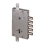 Art. 56505.48 B applicazione planare. Dispositivo di azionamento tramite sistema ad ingranaggi che riduce lo sforzo sulla chiave. Scatola in acciaio con rivestimento in zinco. Scrocco reversibile e catenacci in acciaio zincato alta resistenza. Blocco catenaccio in caso di estrazione forzata del cilindro. Chiusura triplice e 5 catenacci. A 2 mandate. Scatola 125x203 mm. Interasse 85 mm. Entrata 64 mm. Ambidestro. Peso 2,235 kg.