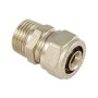 in ottone nichelato. A stringere. Per tubi multistrato, pressione max di esercizio 10 bar. Attacco maschio. Diametro 16x mm. Temperatura di esercizio max 95 C - min -20 C.