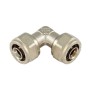 raccordo curvo doppio in ottone nichelato. A stringere. Per tubi multistrato, pressione max di esercizio 10 bar. Intermedi. Dimensioni 16x2-16x2 mm. Temperatura di esercizio max 95 C min -20 C.