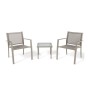 struttura in acciaio, seduta e schienale in textilene.Tavolino da aperitivo - colazione con vetro temperato spessore 5 mm. Composto da: 2 poltrone con seduta 58 x 58 x h 75 cm, tavolino 44 x 44 x h 38 cm. Colore marrone