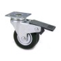 in gomma. Supporto rotante su doppia corona di sfere a piastra in acciaio 40 x 40 mm, zinco cromato. Con dispositivo di bloccaggio ruota. Diametro 50 x 18 x h 66 mm. Portata 30 kg.