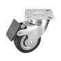 in gomma. Supporto rotante su doppia corona di sfere a piastra in acciaio 60 x 60 mm, zinco cromato. Con dispositivo di bloccaggio ruota. Diametro 60 x 24 x h 88 mm. Portata 50 kg.
